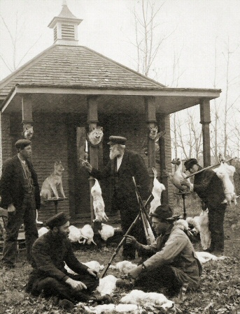 The one with the old man shaking his finger is Grand Pa. After a big jack rabbit hunt. Pointing his finger at your dad. No doubt bawling him out. Sitting on the ground below your dad is A.C. Lovcik. Below Grand Pa is John Kolar. The young fellow with rabbit on back may be uncle Cy or Doc.