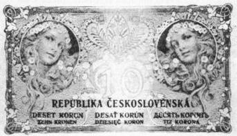 Mucha designed currency for Czechoslovakia in 1920 - amount, 10 crown