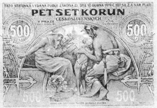 Mucha-designed currency, 1920, 500 crown