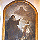 Frank Paul Rumreich was one of the first settlers to arrive from Europe to start the town of Pisek, North Dakota. He made trips to visit his homeland many times, always returning with friends and relatives to settle around Pisek. While there one time, he commissioned the now famous artist, Alfons Mucha, to paint a picture of Saints Cyril and Methodius - the patron saints of Moravia. Their names were hoped to be used in the naming of the new Catholic church in Pisek. The painting was brought to Pisek in 1887 by Frank's sister Marie, when she and her family sailed to the U.S. Ultimately, the church was named St. John Nepomucene, but the magnificent 6' x 10' painting of Saints Cyril and Methodius still hangs in the church. | |